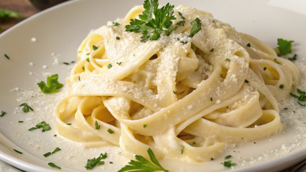 Fettuccine kwa Kiitaliano inamaanisha “vifaa vidogo”. Ni tambi maarufu, bapa na nene kutoka katika mapishi ya Kirumi, ambayo hutengenezwa kwa mayai na unga.