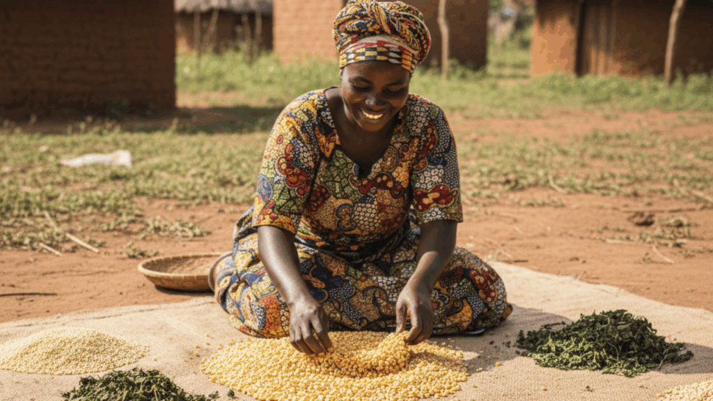 Baada ya kuosha, anika nafaka pamoja na mboga mboga kavu juani kwa siku mbili hadi tatu hadi zikauke vizuri.