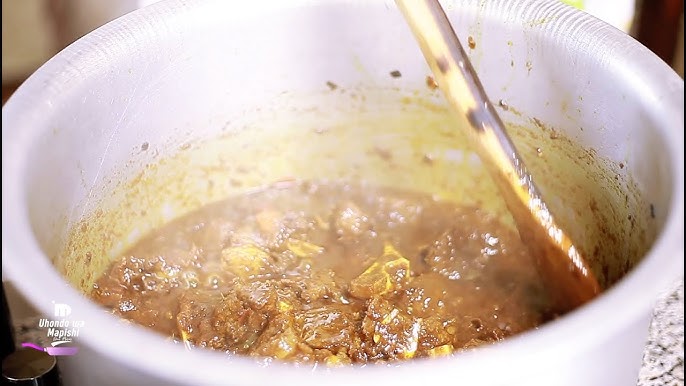 Kama unatumia nyama, iongeze katika mchanganyiko wako na uikaange kidogo ili ichanganyikane na viungo. Unaweza pia kuongeza supu kidogo ya nyama ili kuimarisha ladha.